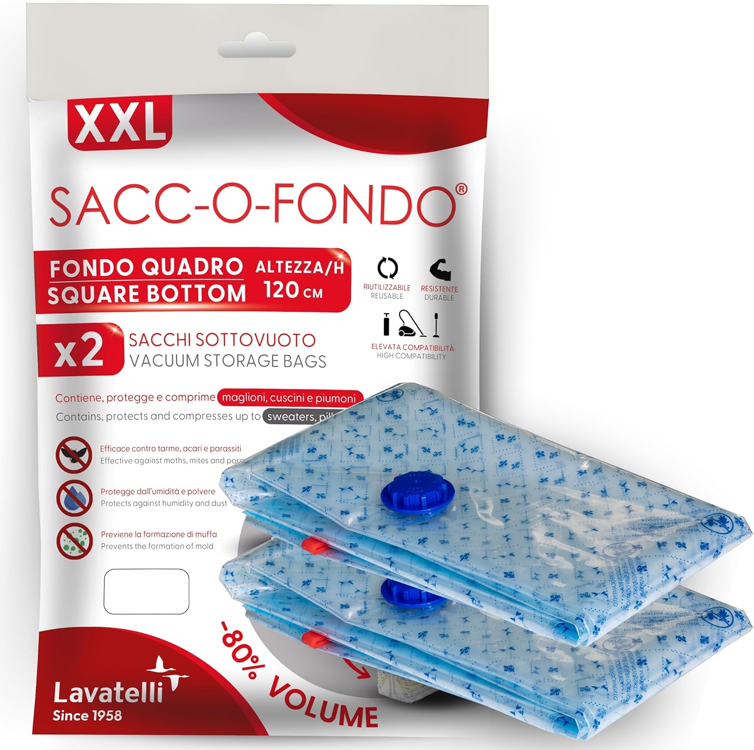 Protection durable — Une fois l’air aspiré, les sacs deviennent hermétiques : vos couvertures, couettes, oreillers sont protégés contre la poussière, l’humidité, les acariens, la moisissure.